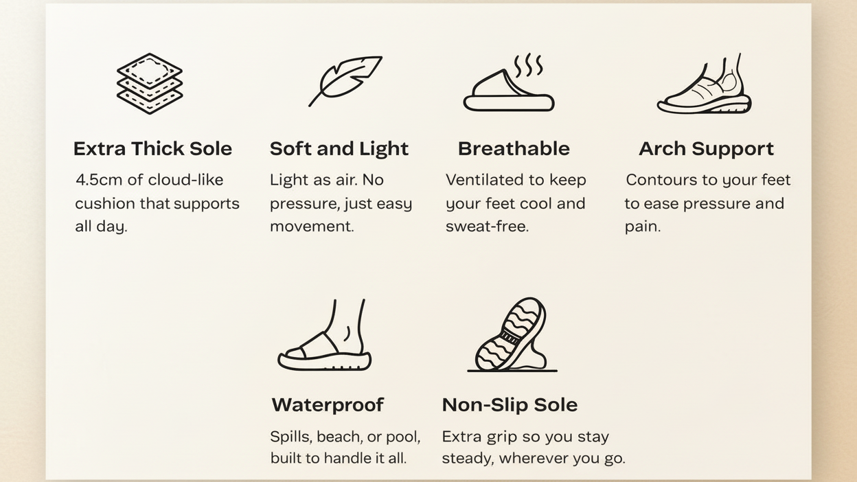 | Water use | ❌ Not water resistant, may get damaged | ✅ 100% waterproof, quick-dry EVA | ❌ Real leather, not water-friendly |